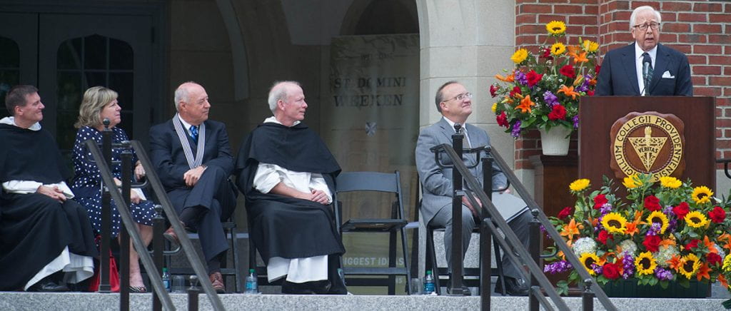 A once-in-a-generation opportunity to dedicate a building for the ages — the new Ruane Center for the Humanities — was celebrated at Providence College with a speech by one of the greatest historians of the era and with the awarding of a medal and a standing ovation to the donor who made the building possible.